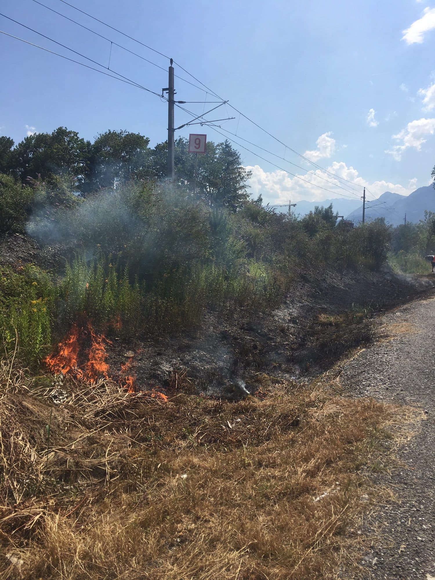 Gegen 15:00 Uhr entstand ein Flächenbrand beim Bahndamm. Durch raschen Löscheinsatz konnte ein Ausbreiten verhindert werden.