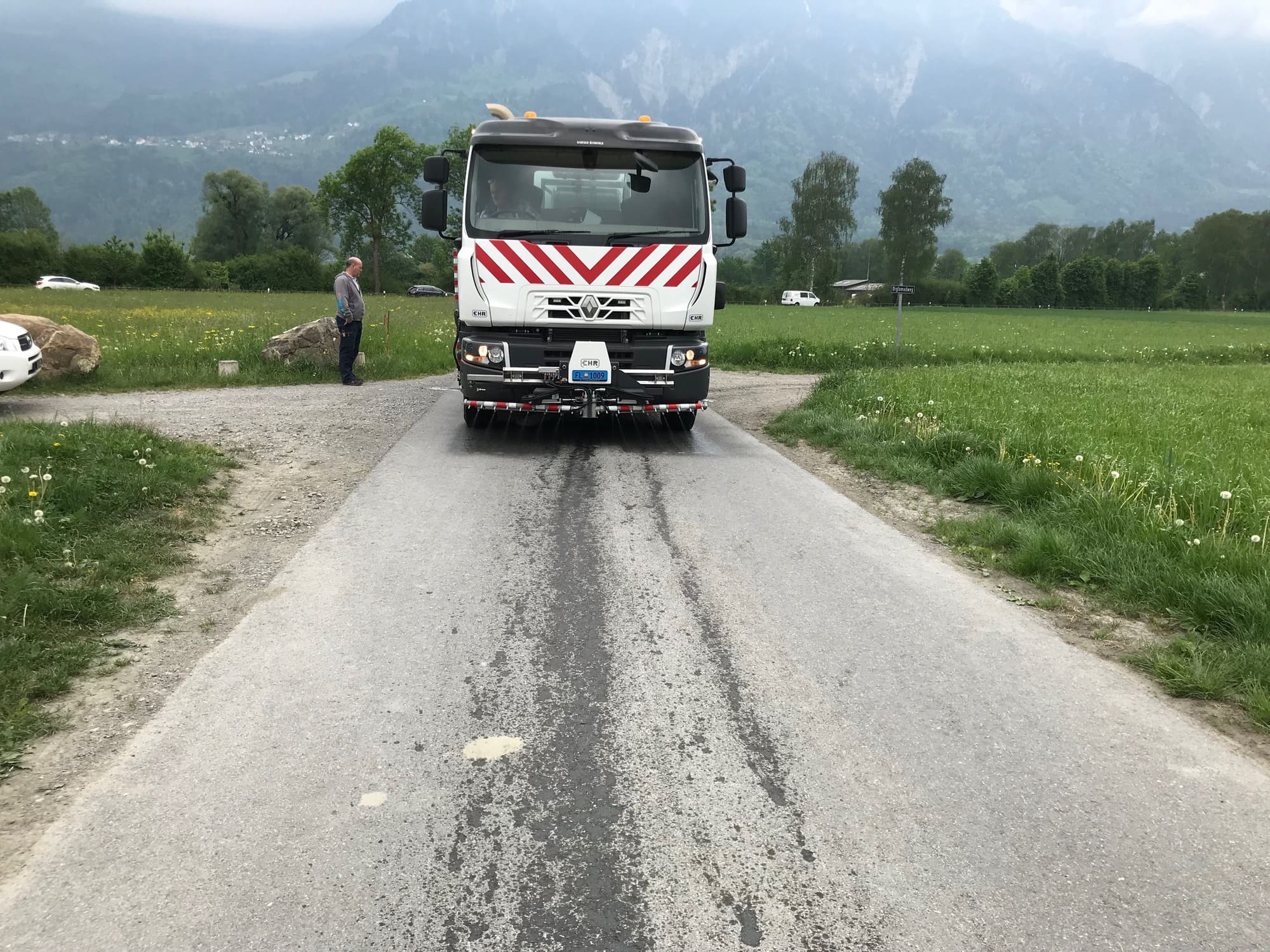 Ölspur auf Strasse wegen einem Defekten Traktor